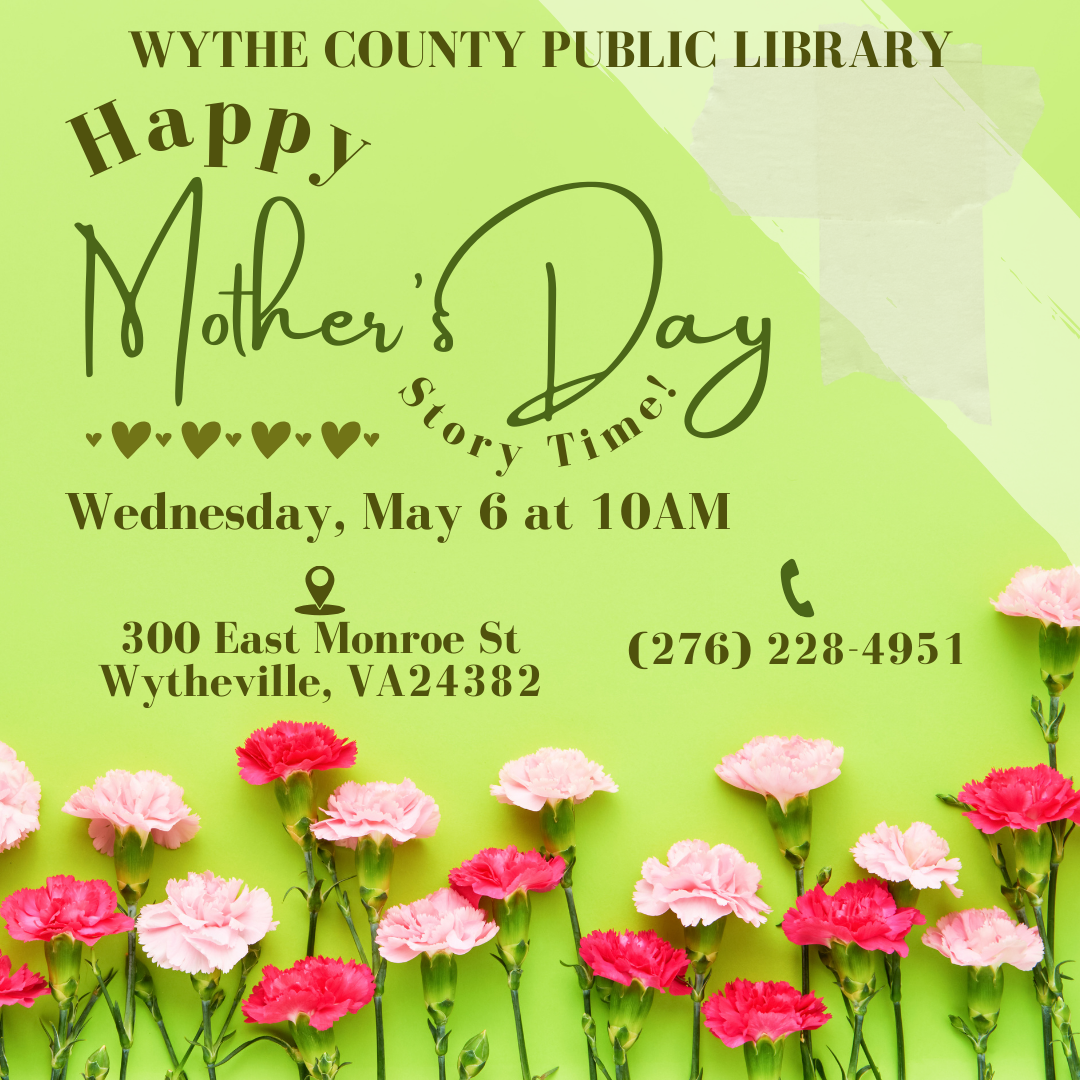 Join us at 10 am on Wednesday for Storytime at Wythe County Public Library. For more information call 276-228-4951.