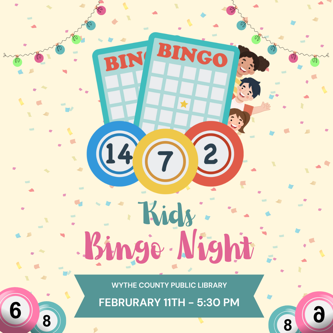 Join us for Kids Bingo Night at Wythe County Library on February 11th from 5:30 to 6:30